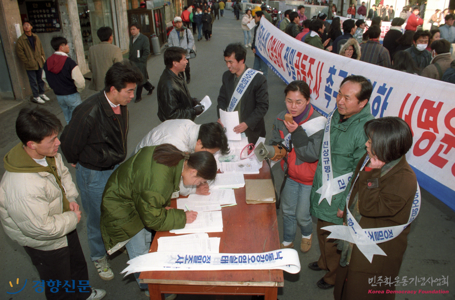 대구백화점 앞에서 열린 환경연합 회원들의 수도세 납부 거부 서명운동