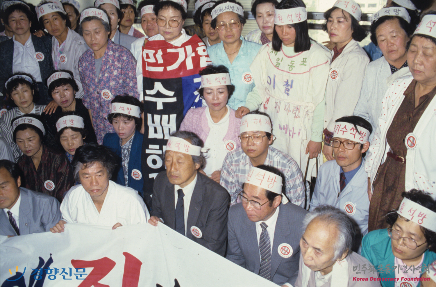 "양심수 특위" 를 구성하여 양심수 전원석방을 요구하는 무기한 농성 모습