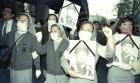 군부의 권력승계 양상을 비난하는 내용의 현수막을 들고있는 학생들의 모습