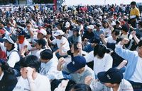 12.12사태 증언을 거부한 최규하 전 대통령 집 앞에서 시민들이 시위를 벌이자 전경들이 그 앞을 둘러싼 모습