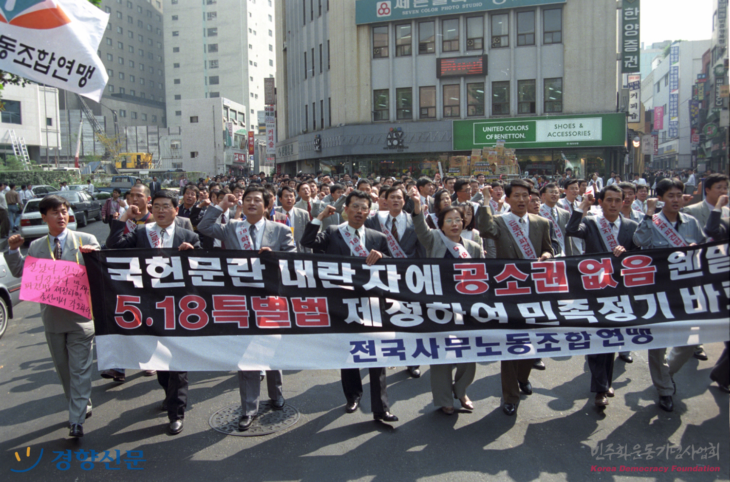 전국사무노동조합연맹이 명동에서 벌인 5.18특별법 제정 촉구시위
