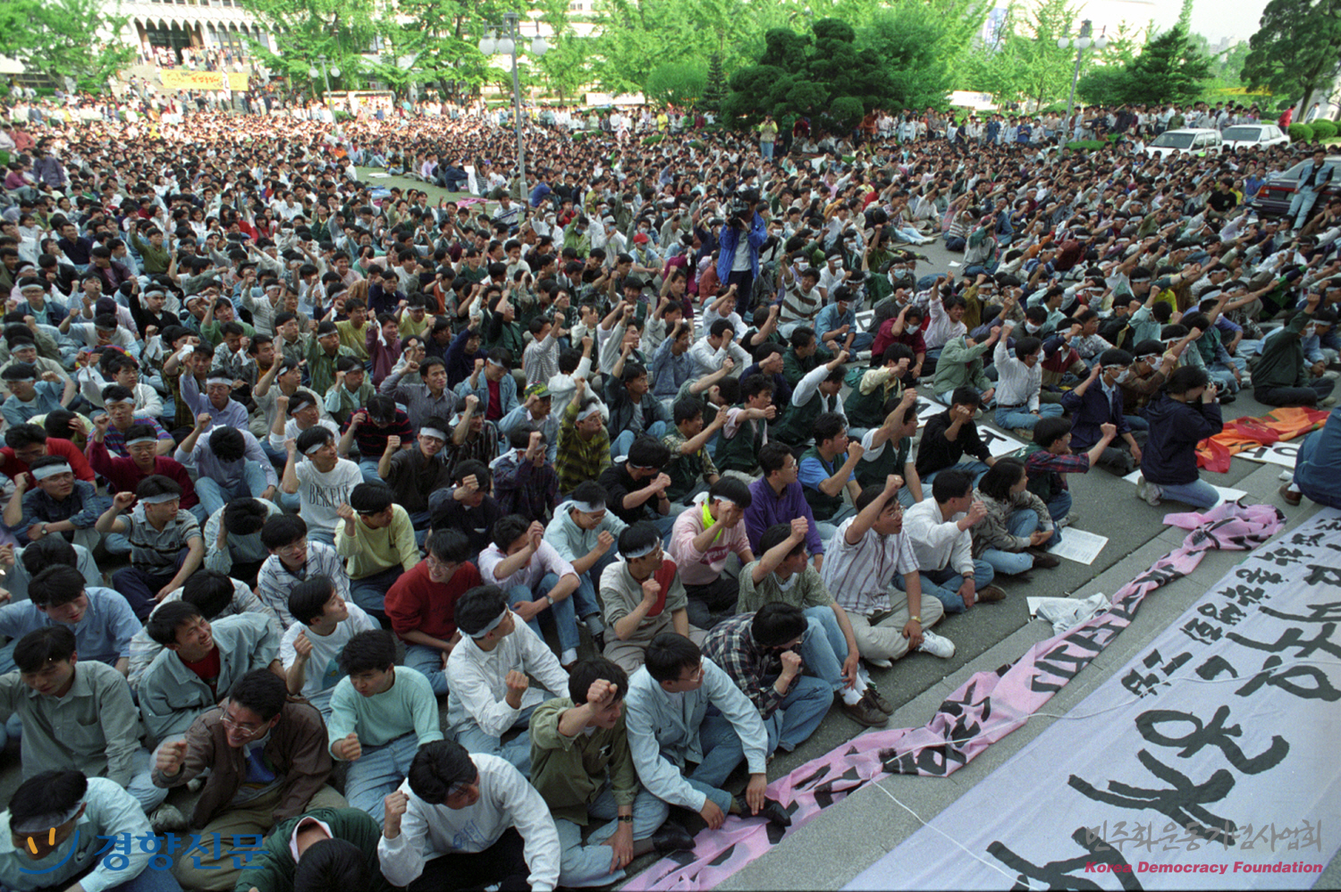 연대에서 열린 5.18 민주항쟁 제13주기 기념 시위에 운집한 학생들
