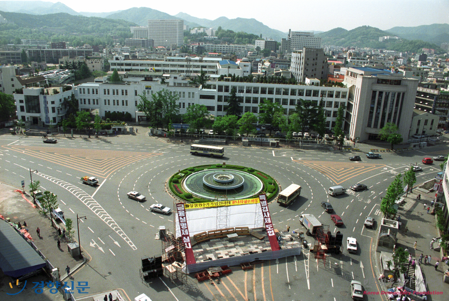 5월항쟁 13주기 기념 전야제 공연무대가 설치 중인 전남도청 앞 광장