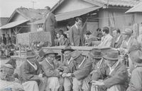 광주 망월묘지에서의 5.18 추모식 제사상과 추모객들