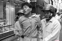 조국통일위원회 발족식이 열린 한양대에서 구호를 외치는 학생들