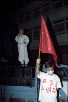 한양대 옥상에서 가두시위를 벌이는 전대협 학생들