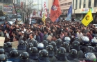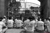 91 범민족대회가 경찰의 저지로 무산되자 연좌농성을 벌이는 대학생들
