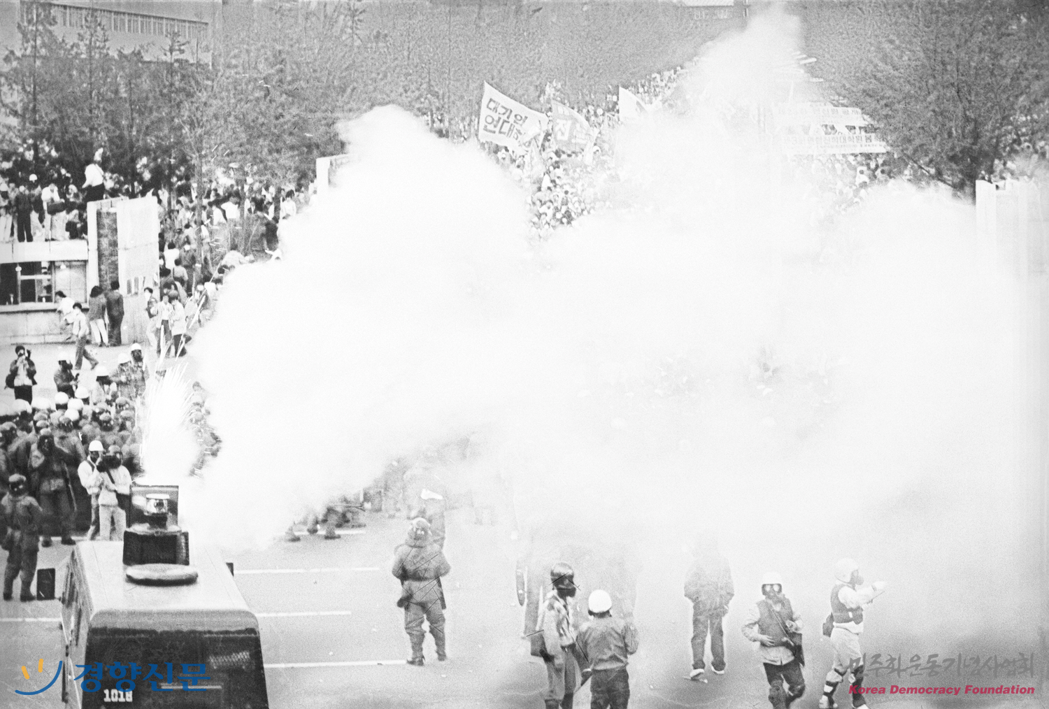 최루탄 가스를 학생들을 향해 살포하는 모습