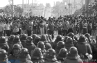시위를 벌이는 학생들과 대치중인 전경들의 모습
