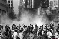 헬기가 건국대 점거농성 현장의 불길을 잡기 위해 동원된 모습