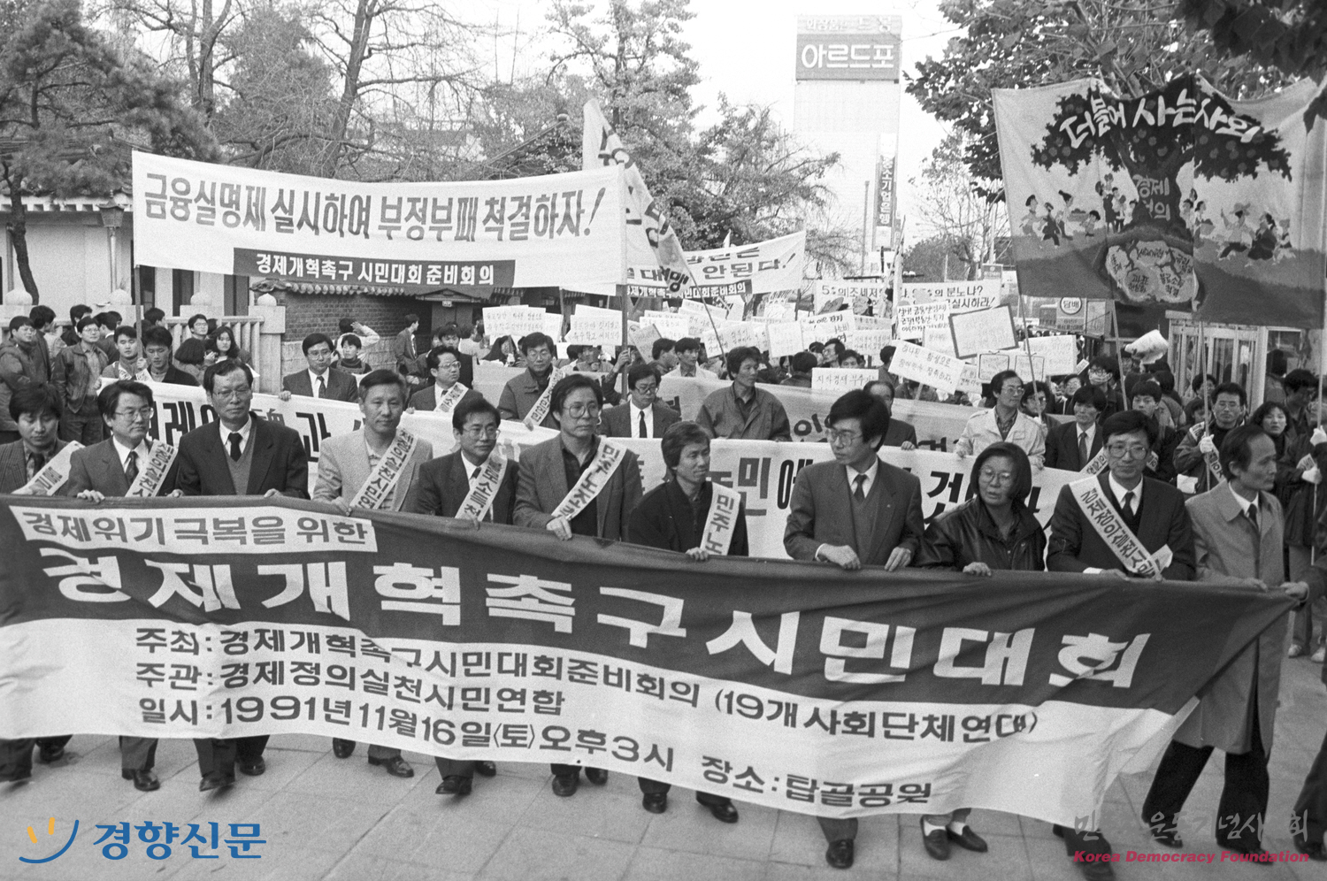 경제위기 극복을 위한 경제 개혁 촉구 시민대회를 갖고 가두 행진하는 시민단체 회원들