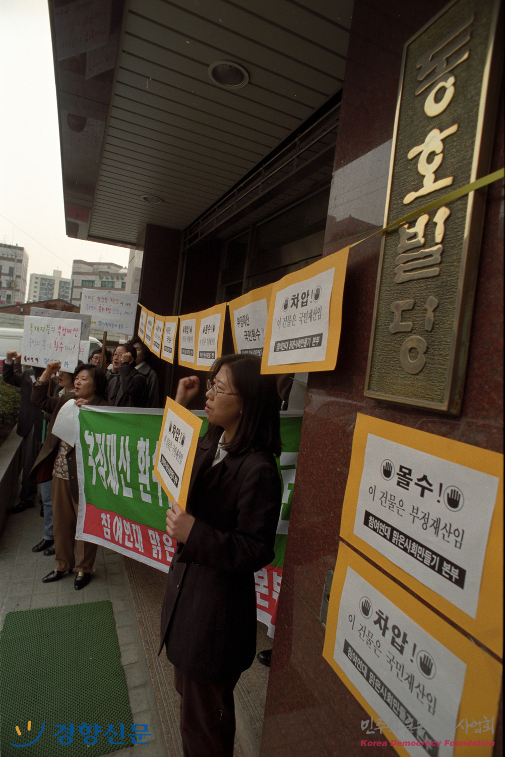 노태우 부정축재 재산 환수를 요구하며 시위하는 시민단체 회원들