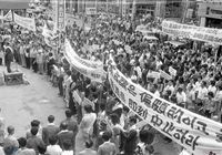 강경대의 노제에서 바리케이드를 세워놓고 경찰과 대치하는 학생들
