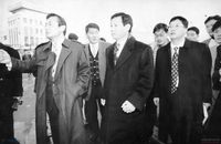강경대의 노제에서 노태우 정권 타도를 외치며 시위하는 학생 시위대