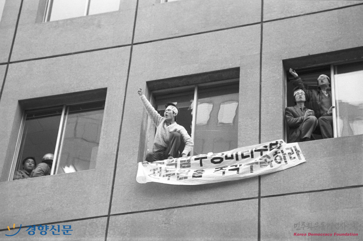 전두환, 이순자 구속처벌을 요구하는 대학생 5명의 국세청 점거농성