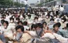 한일회담을 반대하여 서울 시내를 가득 메운 시민들과 이를 막고 서있는 경찰들