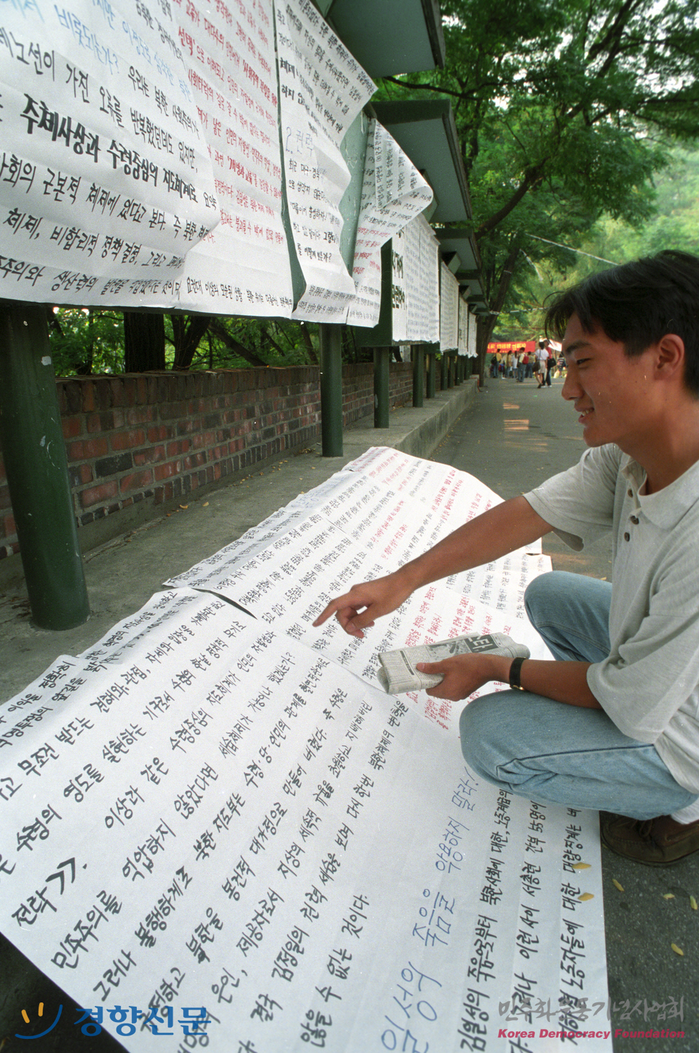 한양대에 붙은 김일성 사망 조문을 권유하는 대자보
