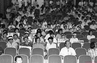 상문고 교사 7명이 재단비리를 폭로하는 양심선언을 하고 기자들이 이를 취재하는 모습