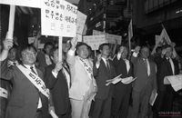 소값피해보상농민투쟁에 관한 회의를 하고 있는 농민대표들과 계훈제 이부영 등 민통련 관계자들