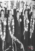 전국민족민주운동연합 결성대회에 참석하여 박수를 치고 있는 백기완과 계훈제, 문익환 목사