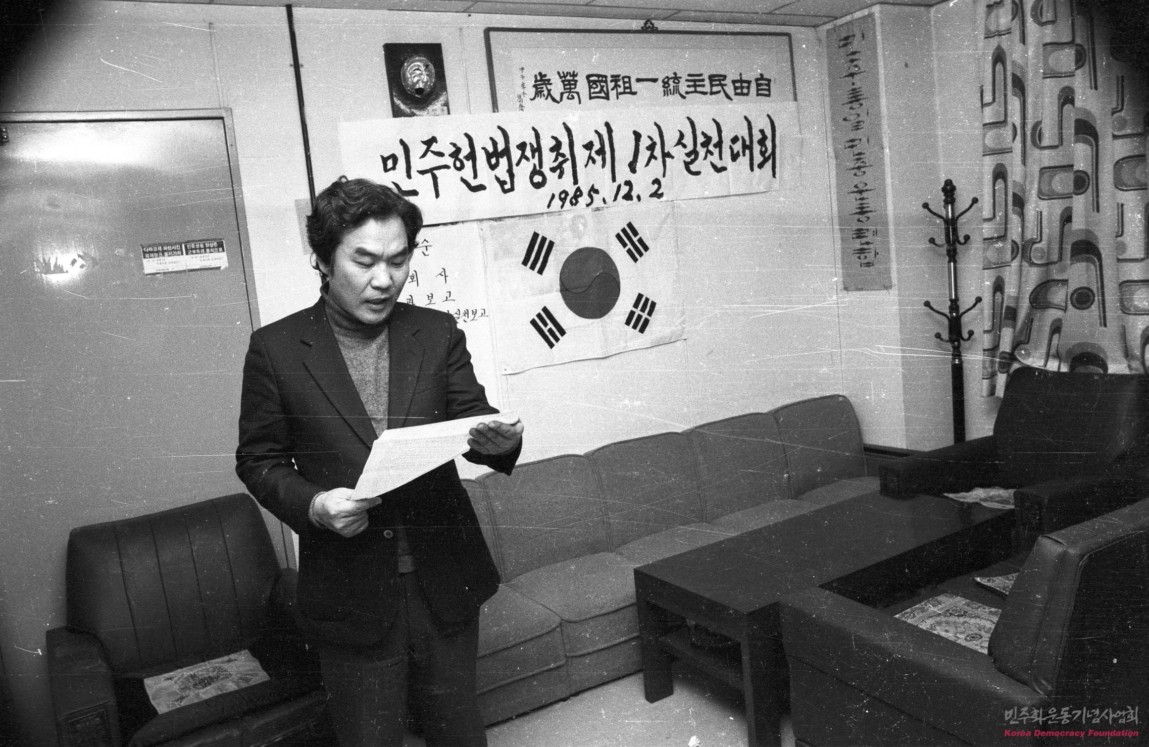 민주헌법쟁취 제1차 실천대회에서 선언문을 낭독하고 있는 참가자
