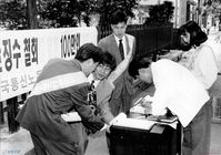 - 생산자 및 기증자가 ‘박용수’인 사진의 사용은 구매신청을 클릭하여 직접 사진 구매 신청을 하실 수 있습니다. 생산자 및 기증자가 ‘경향신문사’인 사진의 사용은 경향신문사 담당자(02-3701-1635)를 통해 구매하실 수 있습니다. 그 외의 생산자 및 기증자는 민주화운동기념사업회 사료관 담당자( hyunchaek@kdemo.or.kr / 02-6440-8961 )에 문의바랍니다.