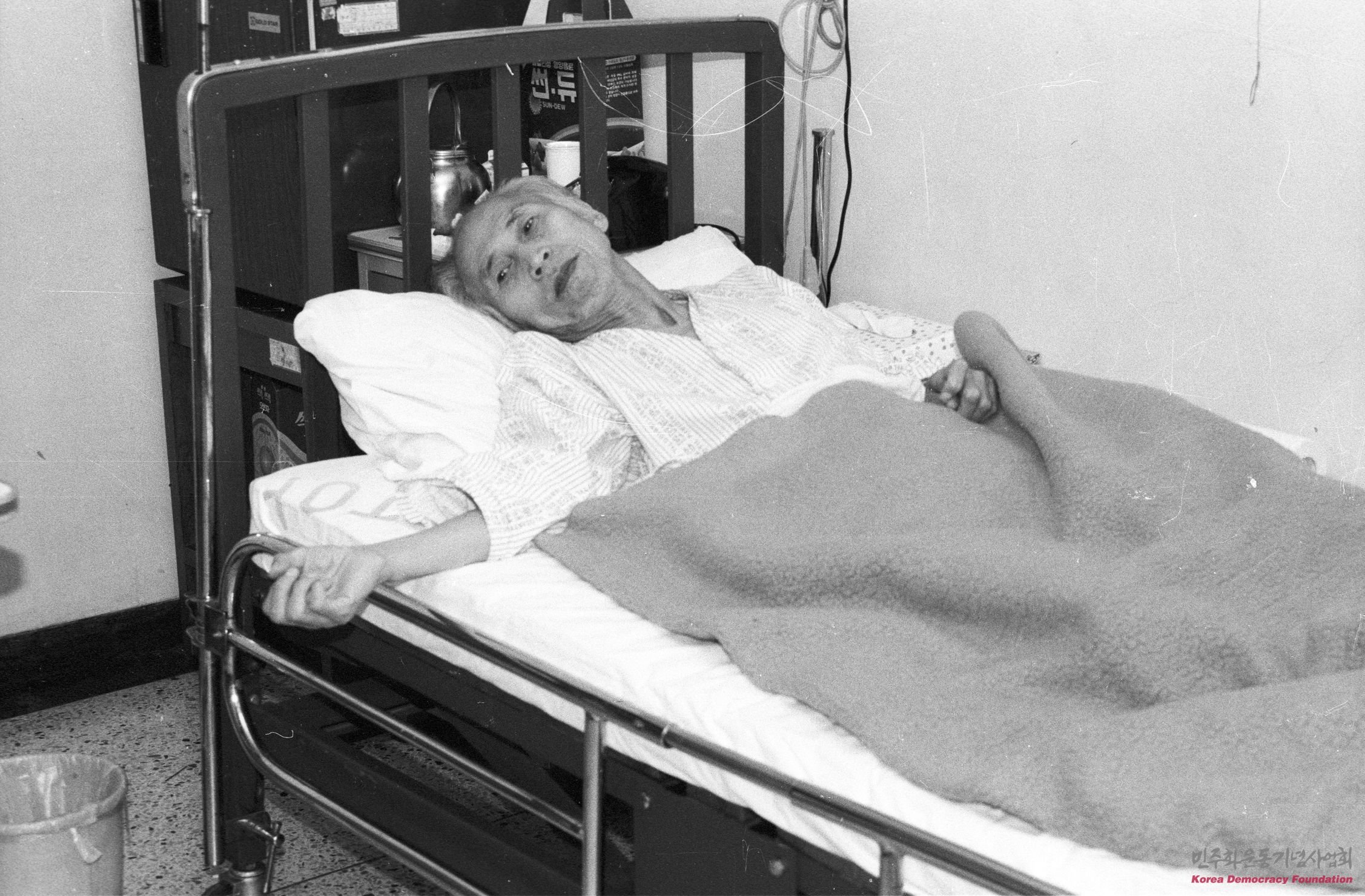 병상에 누워 요양 중인 계훈제 선생의 모습