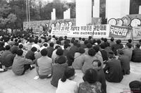 - 개운사에서 민주헌법쟁취 불교공동위원회와 민가협 공동주관으로 양심수 전원석방을 위한 기원법회가 열렸다. 법회 후 참가자들이 개운사 인근에서 가두행진을 벌이자 전경이 이를 저지하고 있다.