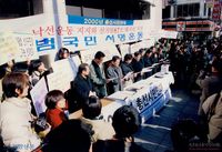 거리에서 해직교사 복직 촉구 서명운동을 하는 전교조