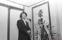 영호남시민결의대회에서 지역감정 해소를 성토하는 전대협 이인영 의장