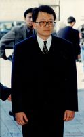 김대중 대선 실패와 관련한 회견장 연단의 문익환 목사