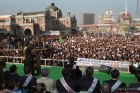 현대노조폭력규탄집회 단상위의 전민련 등 사회운동단체 대표들