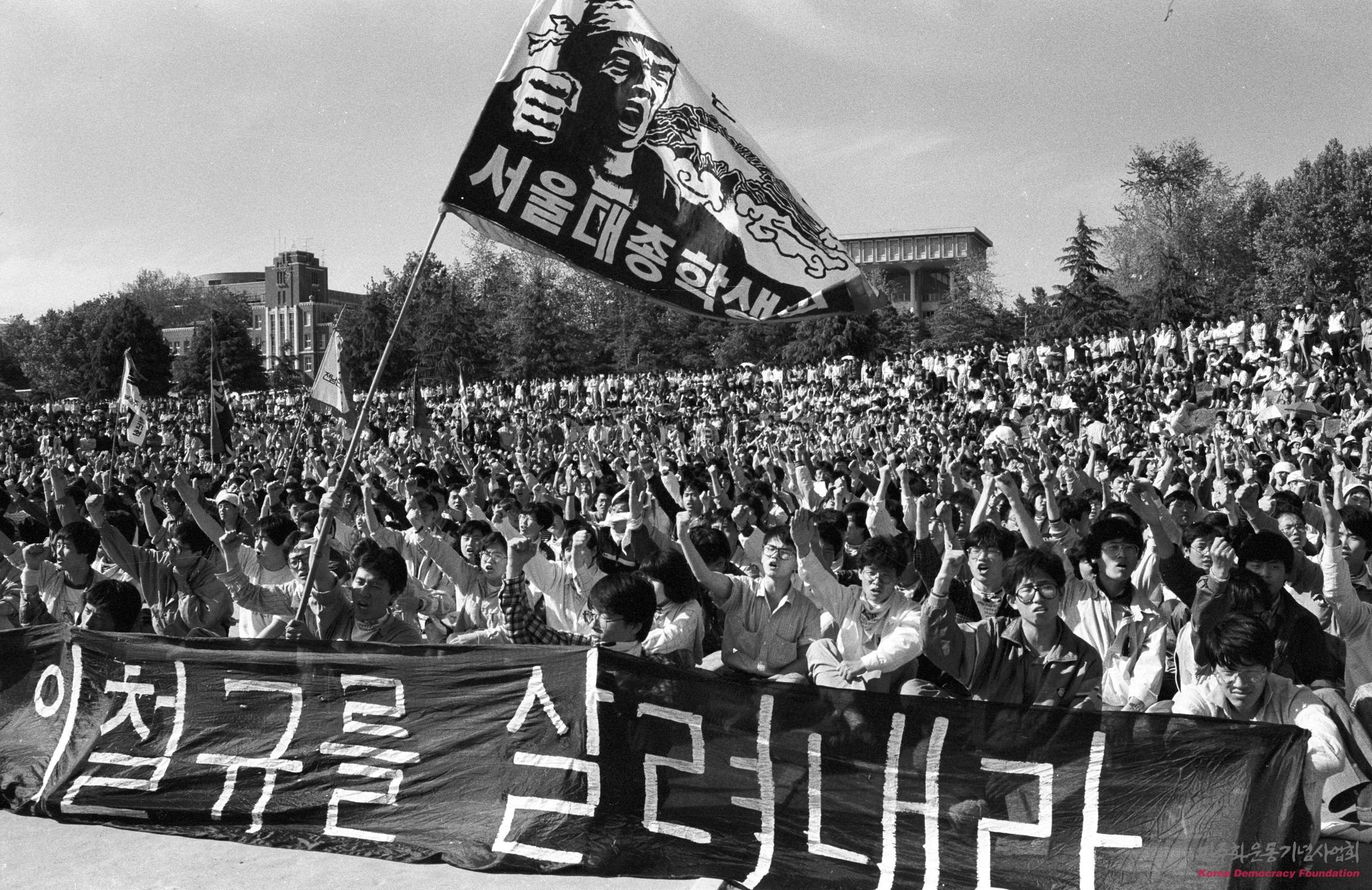 이철규 학생의 사망에 분노를 드러내는 광주민중항쟁계승 국민대회의 대학생들