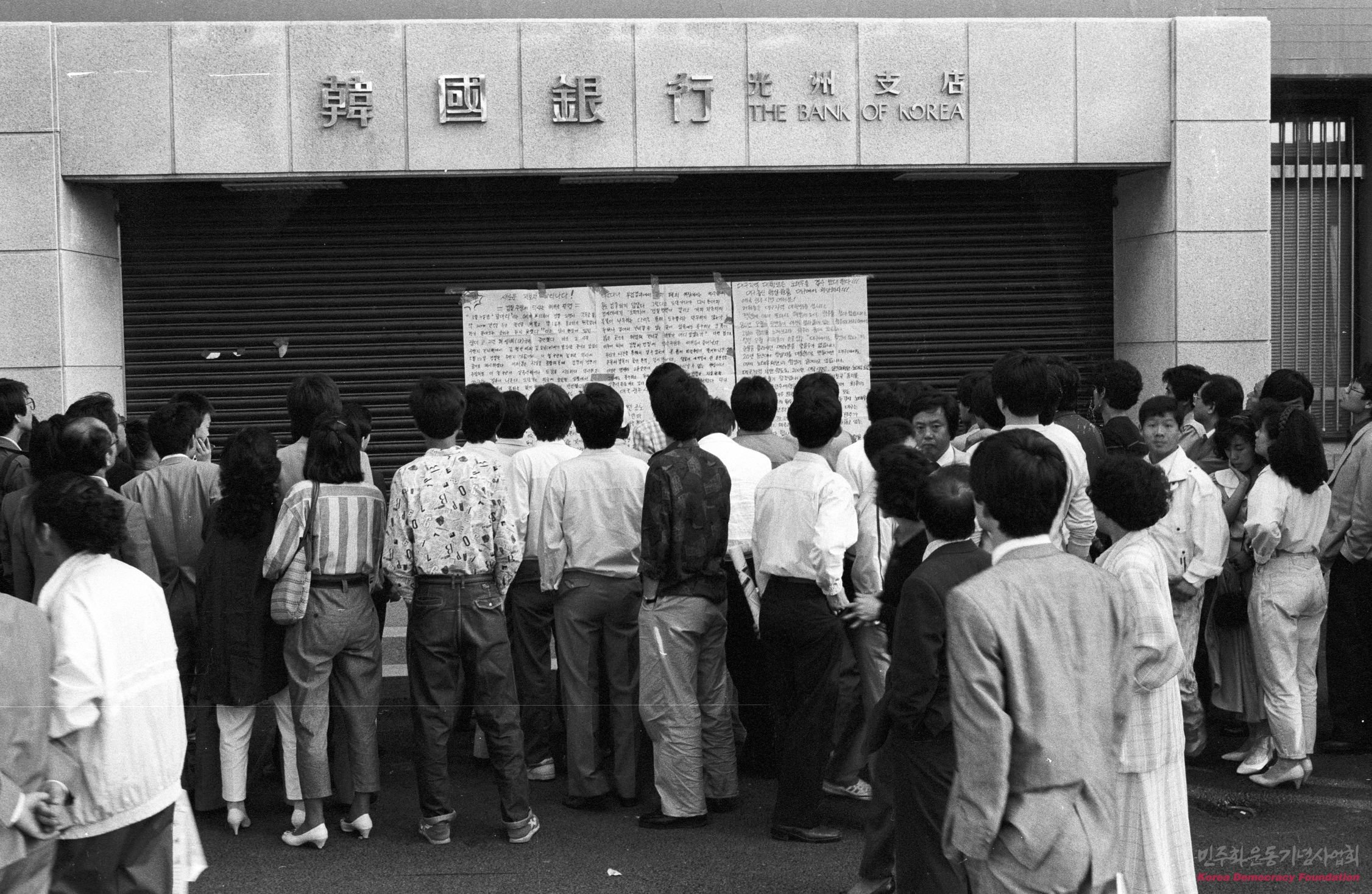 이철규 열사 의문사에 관한 대자보를 지켜보는 광주 시민들