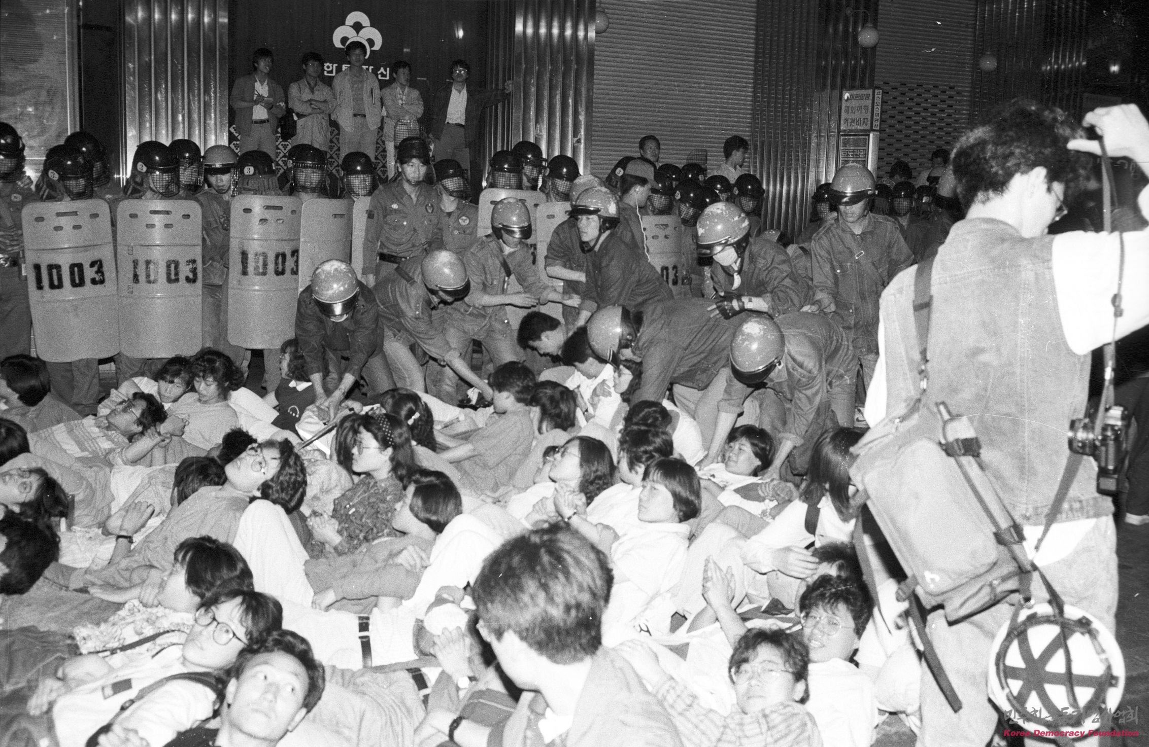 이철규 의문사 진상규명과 노태우 정권의 폭압에 대한 전대협 시위를 강제 해산하는 경찰들