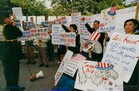 이철규 열사의 시신사진을 보이며 공안정권 타도를 외치는 학생들