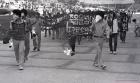 북을 들고 이내창 열사 장례식에 참석한 학생들의 모습