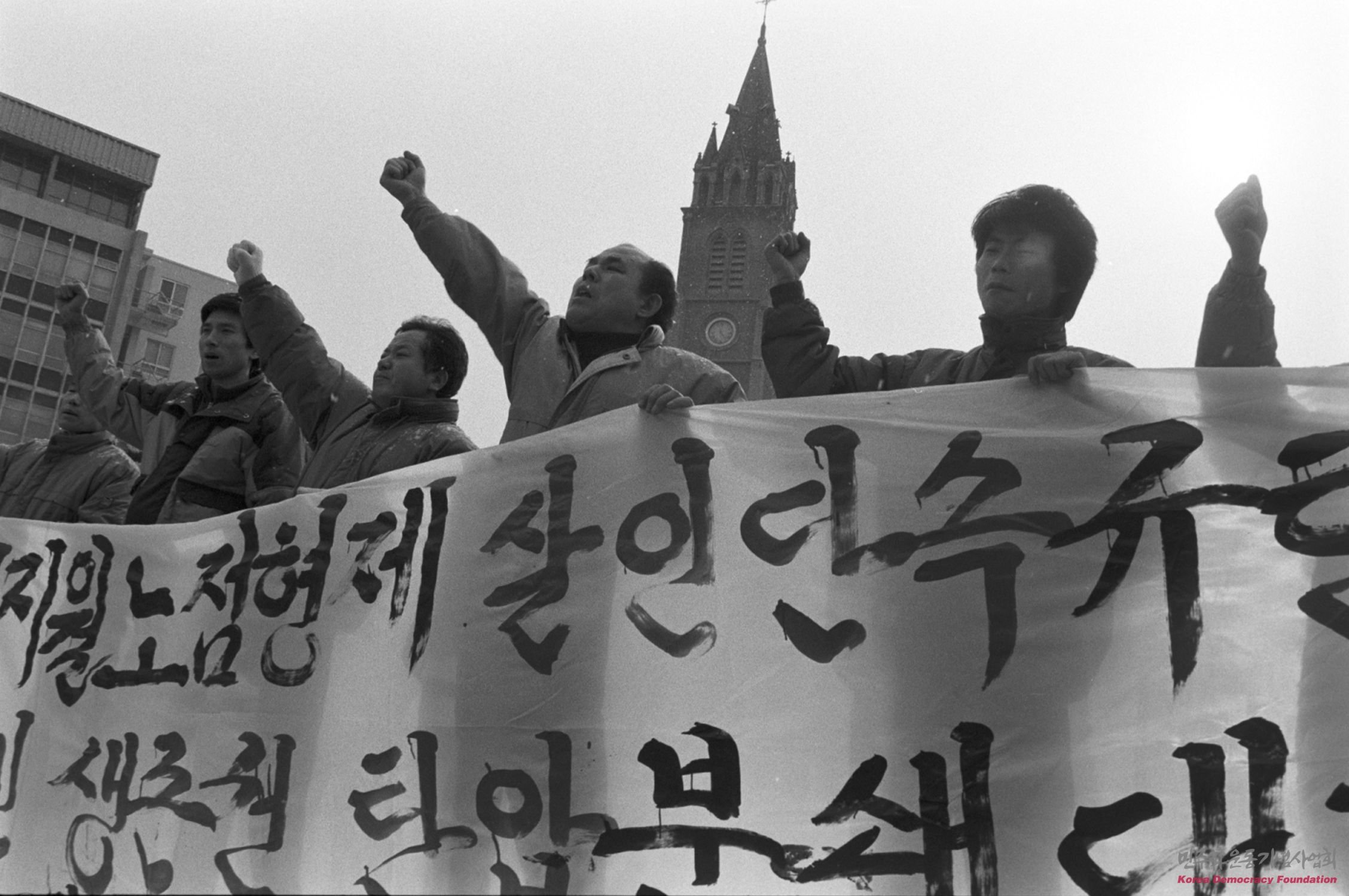 노점상 단속을 규탄하며 시위를 벌이는 전노협 회원들