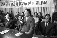 서총련 발대식에서 민주열사를 위한 묵념에 참가한 한상렬, 김희선, 이수호