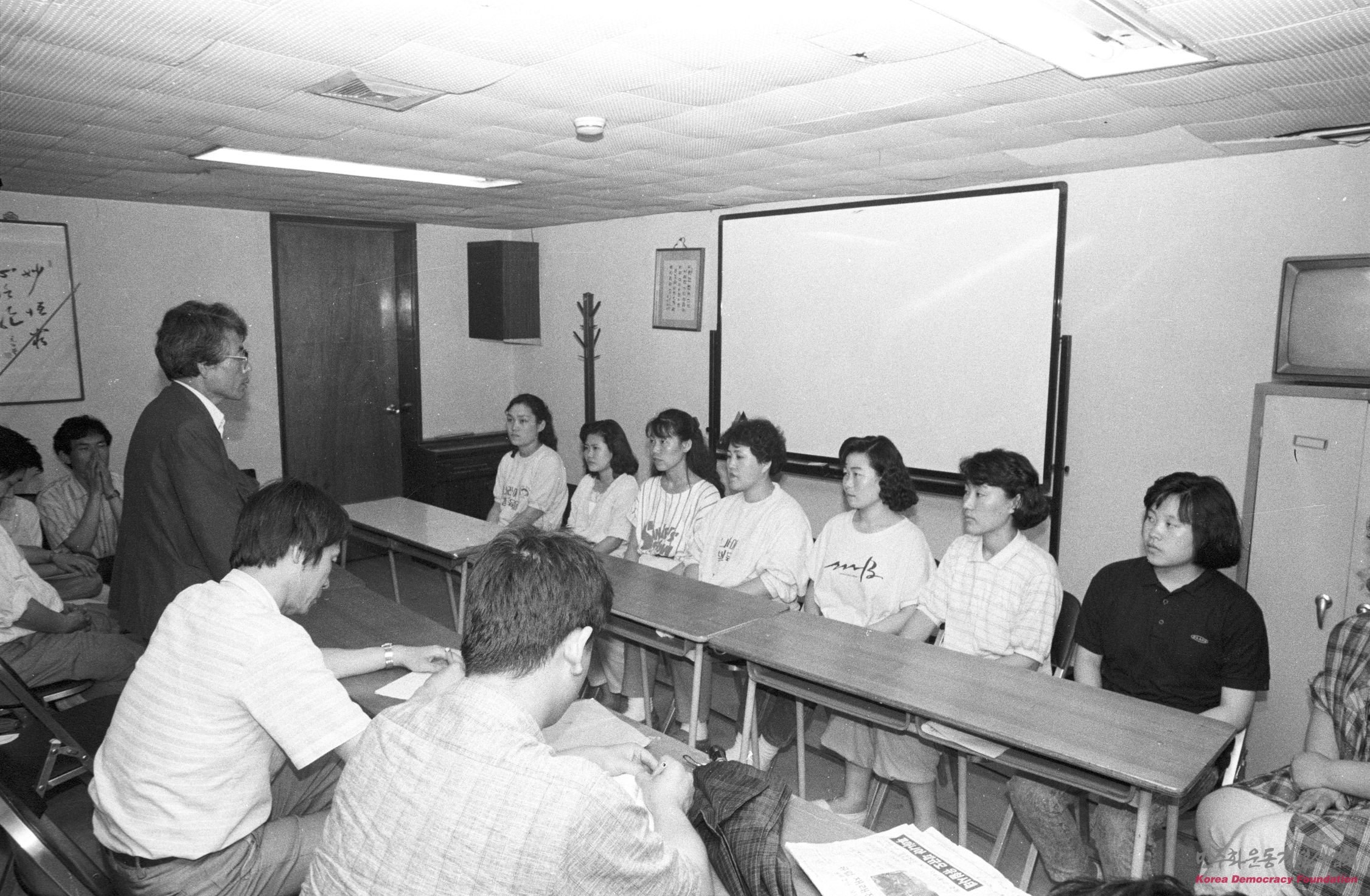 중원전자 노조측과 회사측 관계자들이 회의를 하는 모습