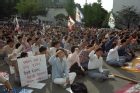 도시빈민대회에서 플래카드를 들고 시위를 하고 있는 서철협 회원들