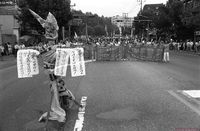 태평양전쟁희생자유족회 회원들이 명동성당 앞에서 가두시위를 하는 모습
