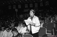 최동 열사의 영결식에서 연좌시위를 벌이는 학생들과 유가족들