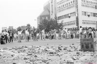 최동 열사의 노제를 막는 전경들과 몸싸움을 벌이는 학생들