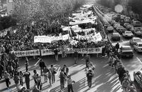 북을 앞세워서 서총련 2학기 진군식이 열리는 건국대 안으로 들어오는 학생들