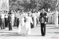 조영래 변호사의 영결식에서 문상객과 인사를 나누고 있는 유족의 모습