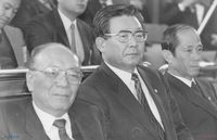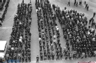 기습시위로 인해 출동한 백골단과 시위단이 대치하고 있는 광경