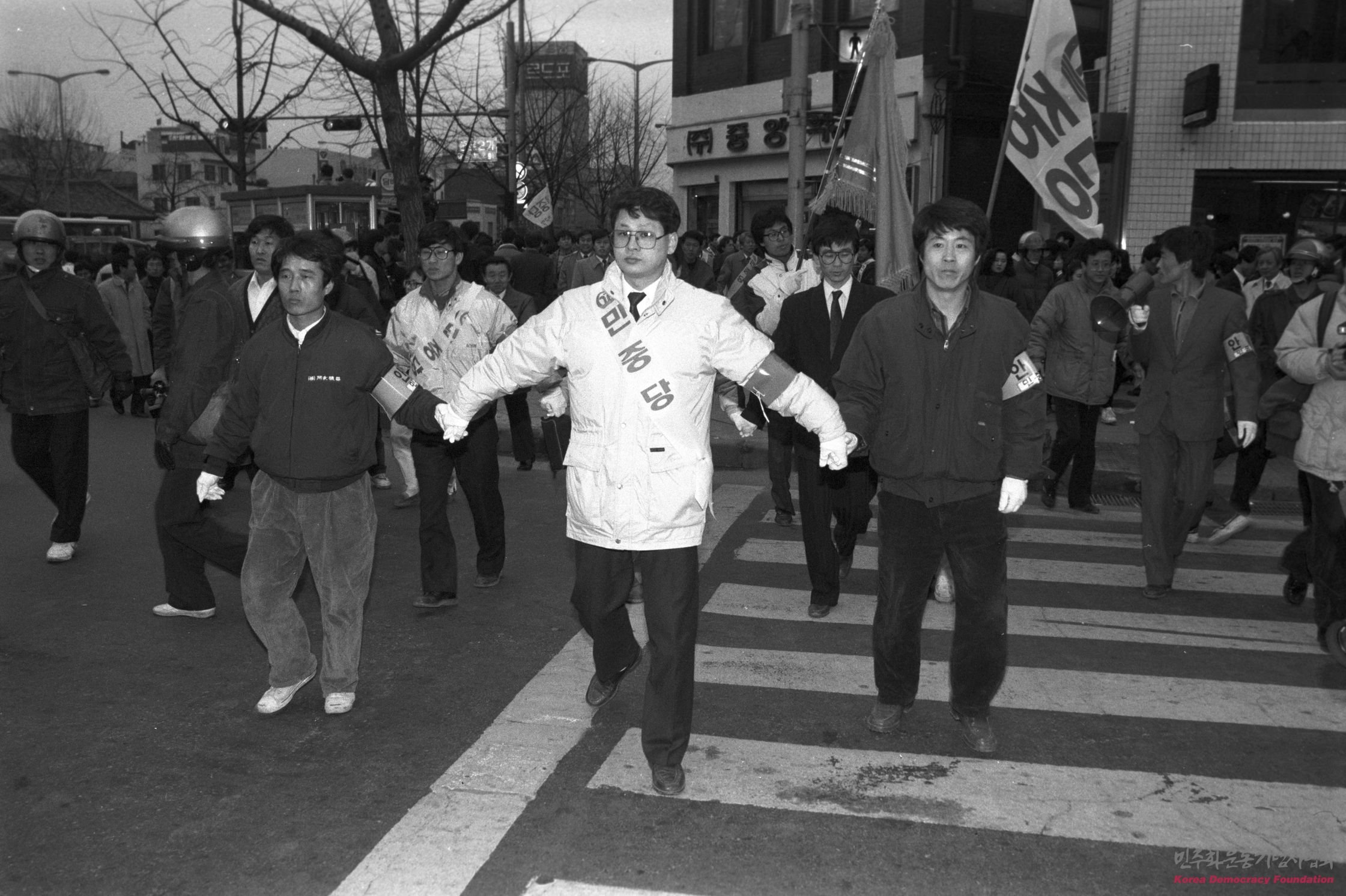 민중당이 주최한 수서비리 규탄대회가 열리고 있는 광경