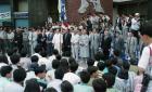 시위를 벌이는 시위대를 진압하기 위해 페퍼포그가 동원된 모습