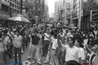 입에 마스크를 두르고 노태우 정권 퇴진 요구 시위를 벌이고 있는 국민연합의 모습